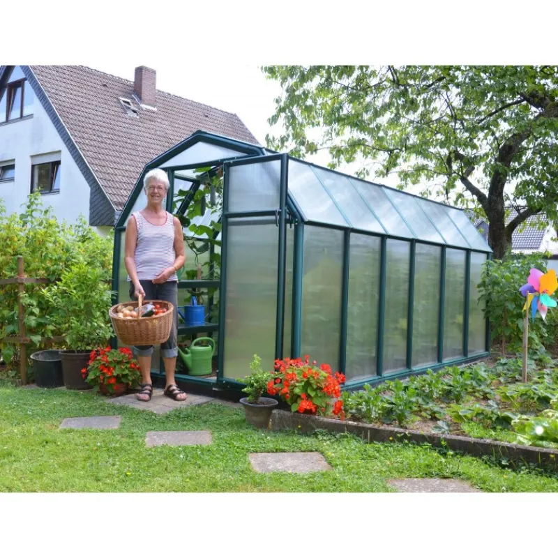 - Pannelli del tetto e delle pareti in policarbonato a doppia parete: I pannelli del tetto da 4 mm e quelli delle pareti da 6 mm proteggono dalla forte esposizione al sole e prolungano la stagione proteggendo le piante dalle gelate autunnali, fornendo al contempo oltre l’82% di trasmissione della luce