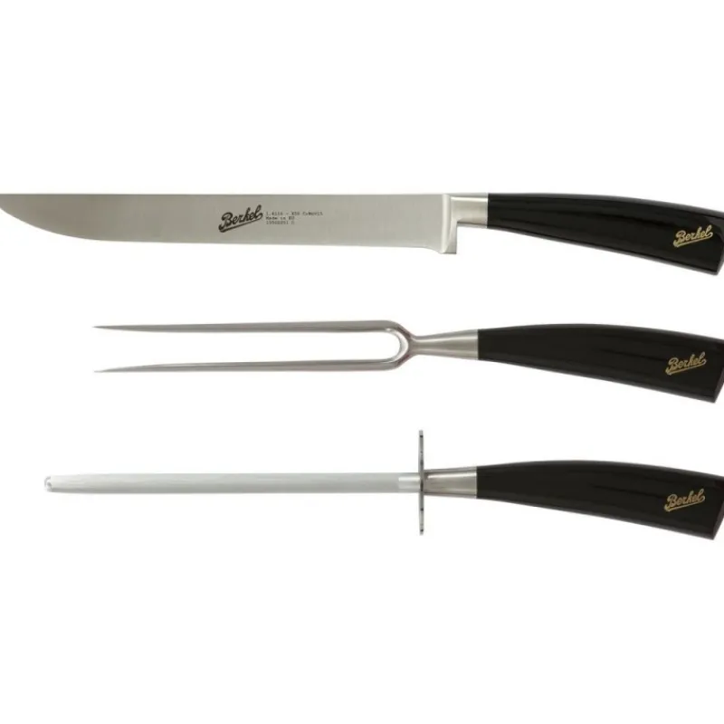 Composizione del set: Coltello Arrosto 22 cm – Forchettone 18 cm – Acciaino 20 cm