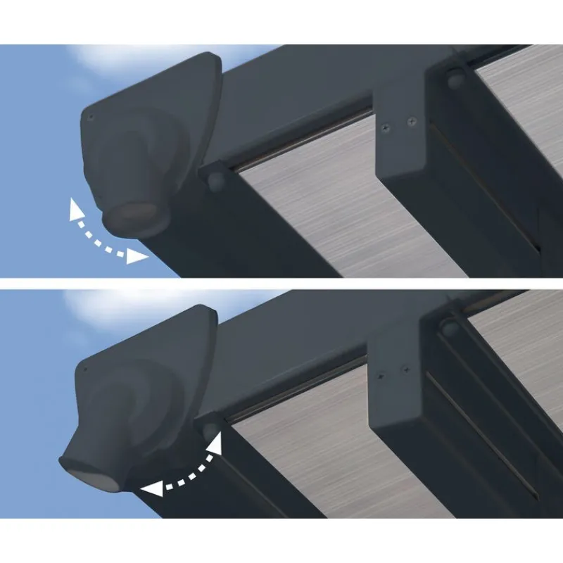 Scopri la Pergola Addossata Canopia Feria in Alluminio 3X10.4 m Grigio: elegante, robusta e priva di ruggine. Facile da montare grazie al sistema Click N’ Lock, offre una copertura estetica e senza manutenzione per il tuo patio. I pannelli in policarbonato resistono agli urti e proteggono dal 100% dei raggi UV. Goditi la vita all’aperto senza preoccuparti del tempo. Pali regolabili e sistema di grondaie integrato. Non richiede manutenzione.