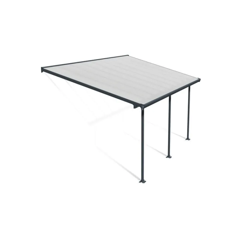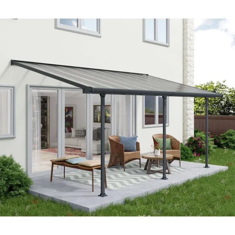 Godetevi la vita all’aperto con la copertura per patio Palram – Canopia Feria. Utilizzate questa copertura estetica e priva di manutenzione come copertura per patio, tettoia, solarium o spa: date libero sfogo alla vostra immaginazione. Godetevi le riunioni di famiglia e i barbecue senza lasciare che il tempo capriccioso rovini il divertimento. Questa struttura ad alte prestazioni è progettata per essere facilmente assemblata da due persone, utilizzando il sistema di copertura Click N’ Lock per un montaggio facile e sicuro, che blocca le vetrate tra le barre della struttura e impedisce all’acqua di entrare nelle vetrate. Non richiede esperienza, né competenze o strumenti particolari. Feria offre alla vostra famiglia un riparo elegante, robusto e privo di ruggine per gli anni a venire.