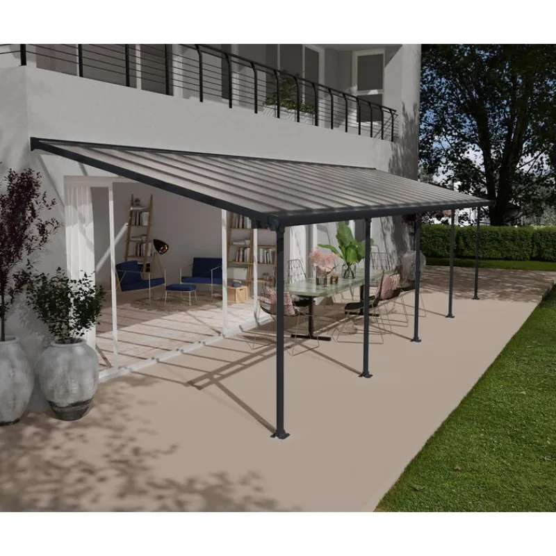 Scopri la Pergola Addossata Canopia Feria in Alluminio 3X9.7 m Grigio, la soluzione ideale per godere della vita all’aperto. Facile da montare, resistente e priva di manutenzione, questa copertura per patio è perfetta per riunioni di famiglia e barbecue. I pannelli in policarbonato a nido d’ape offrono una protezione totale dai raggi UV, mentre il telaio in alluminio garantisce robustezza e durata. Con il sistema di montaggio Click N’ Lock, l’installazione è un gioco da ragazzi. Goditi il tuo spazio esterno con Canopia!