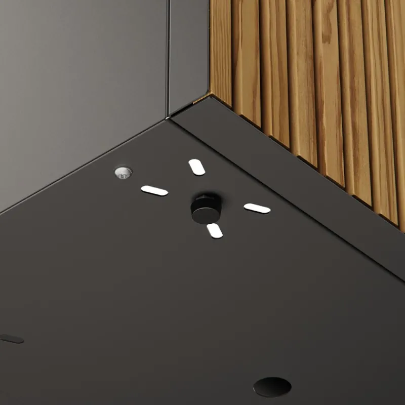 La collezione Herstera Deco Planter presenta fioriere di varie altezze e profondità che possono essere collegate insieme. Dal design pulito e lineare, questa collezione si adatta perfettamente a qualsiasi spazio e ambiente. La combinazione di acciaio nero e legno massello di pino termotrattato aggiunge calore e distinzione. Quando le fioriere sono collegate, la struttura non ha pareti interne, favorendo la crescita naturale delle radici. Inoltre, un’ampia gamma di accessori compatibili consente la personalizzazione per soddisfare le esigenze specifiche di ogni progetto. Le fioriere sono dotate di una base dotata di fori di drenaggio per evitare ristagni idrici e promuovere la salute delle piante. I piedini regolabili forniti con ogni fioriera permettono di livellarla su terreni irregolari, garantendo stabilità e corretto drenaggio. Il pannello in legno è installato magneticamente sulla fioriera e può essere rimosso frontalmente utilizzando l’attrezzo in dotazione senza dover smontare la fioriera.