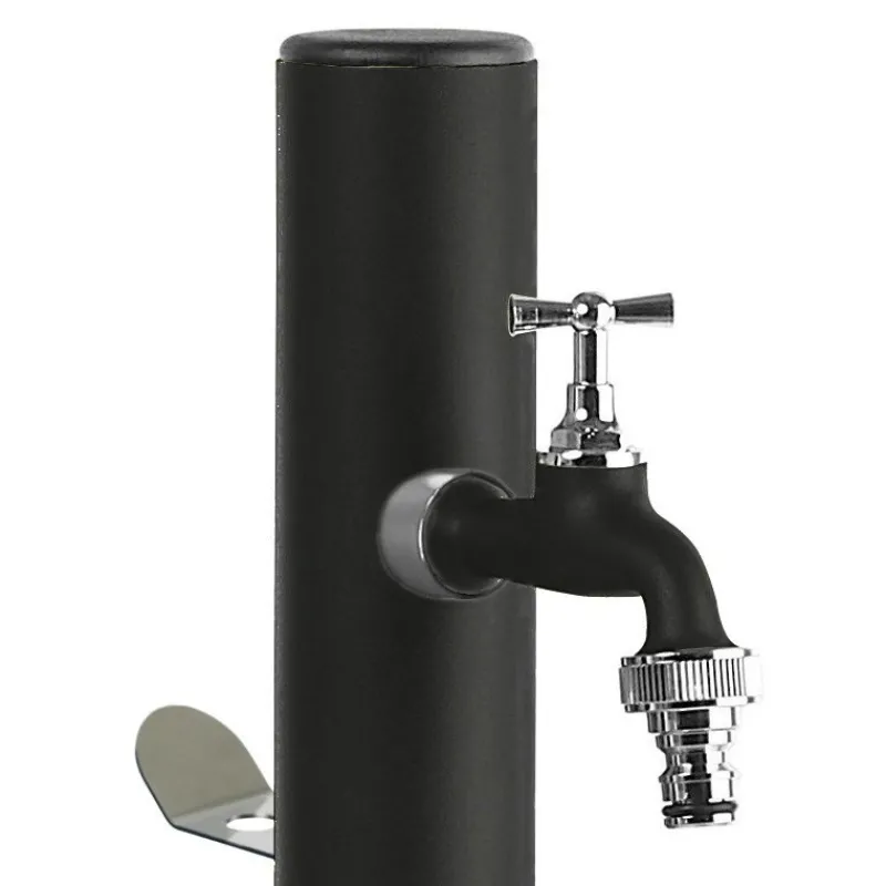 Colonnina idrica in acciaio verniciato tonda da interrare, completa di rubinetto in tinta e sella portatubo in acciaio inox. Accessori di fissaggio esclusi. Disponibile in 5 colori.