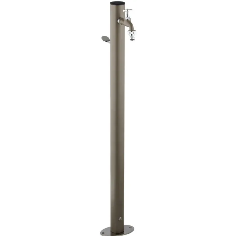 Colonnina idrica tonda in acciaio verniciato da posare in superficie. Completa di rubinetto in ottone cromato e verniciato, sella portatubo e basamento di fissaggio in acciaio inox. Viteria inclusa, accessori di fissaggio esclusi. Disponibile in 5 colori.