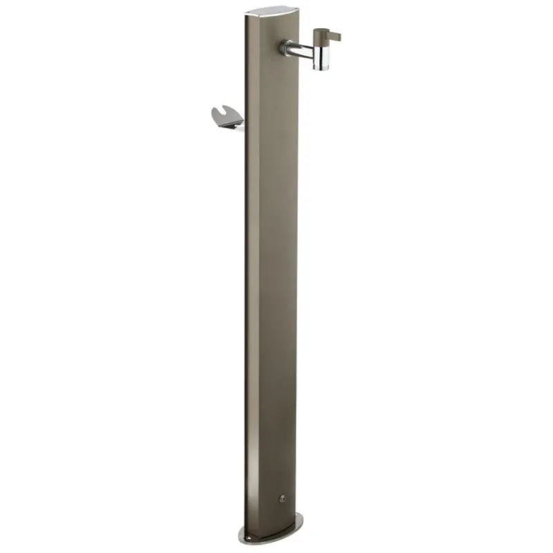 Colonnina idrica ovale in acciaio verniciato da posare in superficie. Completa di rubinetto in ottone cromato verniciato in tinta, sella portatubo e basamento di fissaggio in acciaio inox. Viteria inclusa, accessori di fissaggio esclusi. Disponibile in 5 colori.
