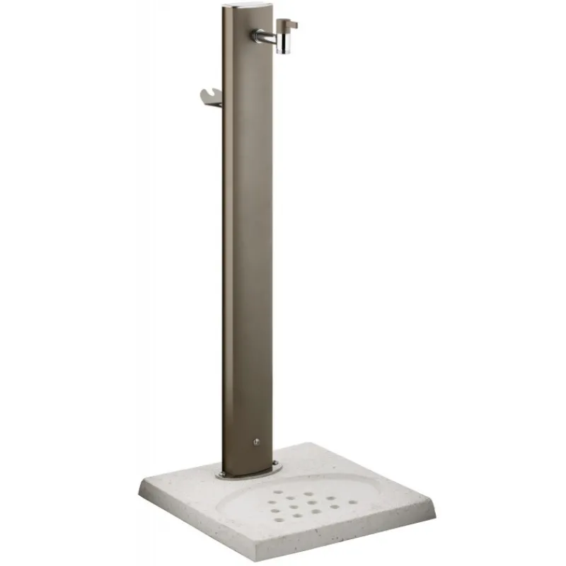 Tutte le fontane Colortap della linea Aquapoint sono progettate secondo uno stile moderno che non rinuncia a funzionalità e durata nel tempo: vengono infatti realizzate con estrusi di alluminio lavorati e verniciati a polveri poliestere antigraffio per outdoor, così da resistere a pioggia, caldo e corrosione. Tutta la componentistica è antiruggine e resistente alle intemperie. La sella portatubo è in acciaio inox, così come il basamento di fissaggio, mentre i rubinetti sono in ottone cromato.