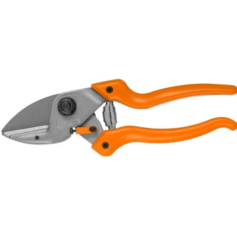Forbice con taglio a battente e manici regolabili in larghezza. Questa forbice dalla linea snella è particolarmente comoda grazie allo speciale meccanismo di sostituzione della lama: se posizionata più esternamente, è sufficiente svitare un dado per sostituirla senza essere costretti a smontare l’intera forbice. Inoltre, i manici regolabili in larghezza e la forma differente del manico superiore e inferiore permettono una presa salda ed estremamente comoda. Una forbice di nuova generazione con un taglio a battente centrale sempre perfetto. – Forbice in cromo vanadio – Manici in plastica dura resistent,e regolabili in larghezza Lunghezza: 20 cm Diametro max di taglio: 25 mm Peso: 240 g