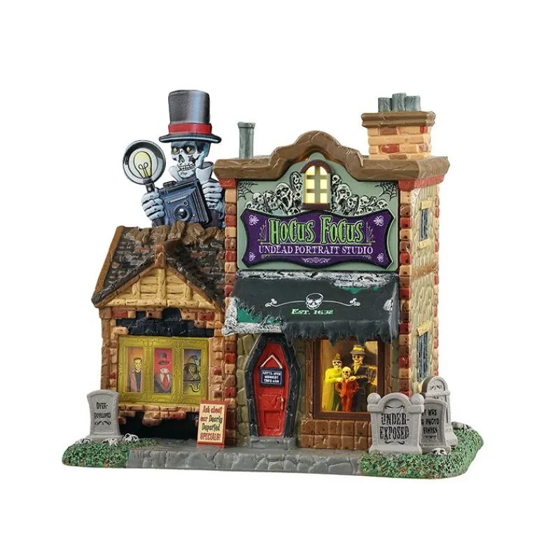 Immergiti nel magico mondo di Lemax con l’Hocus Focus Undead Portrait Studio. Questo pezzo da collezione unico è perfetto per aggiungere un tocco di mistero e fascino ai tuoi villaggi natalizi o di Halloween.