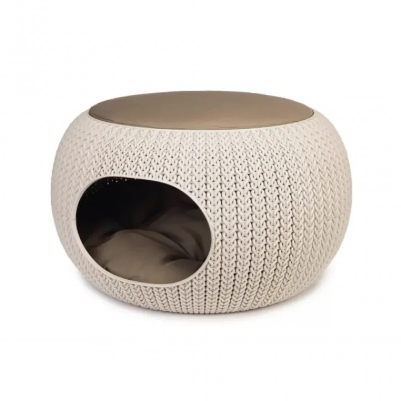 Questa cuccia per cani e gatti ha un diametro di 55 cm ed è alta 35 cm. È realizzata in plastica di alta qualità e viene fornita con due cuscini. Caratterizzata da un design elegante, questa cuccia per animali domestici sarà un elemento di decoro per ogni stanza.
