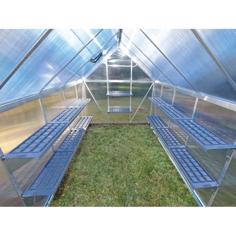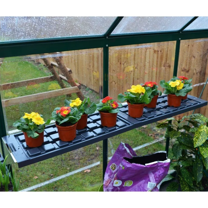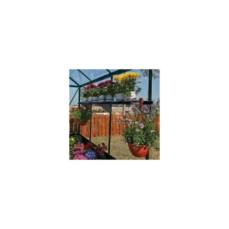 Rendi la tua serra Palram – Canopia più accessoriata con questo kit di due scaffali. Risparmia spazio e rendi la struttura più funzionale. Gli scaffali sono realizzati in plastica PVC facile da pulire con bracci e cerniere in acciaio galvanizzato. Ogni scaffale supporta fino a 20 kg e si monta sul telaio della serra. Questi scaffali possono essere smontati per rimuovere piante o terriccio in eccesso che potrebbe accumularsi sul fondo del ripiano.