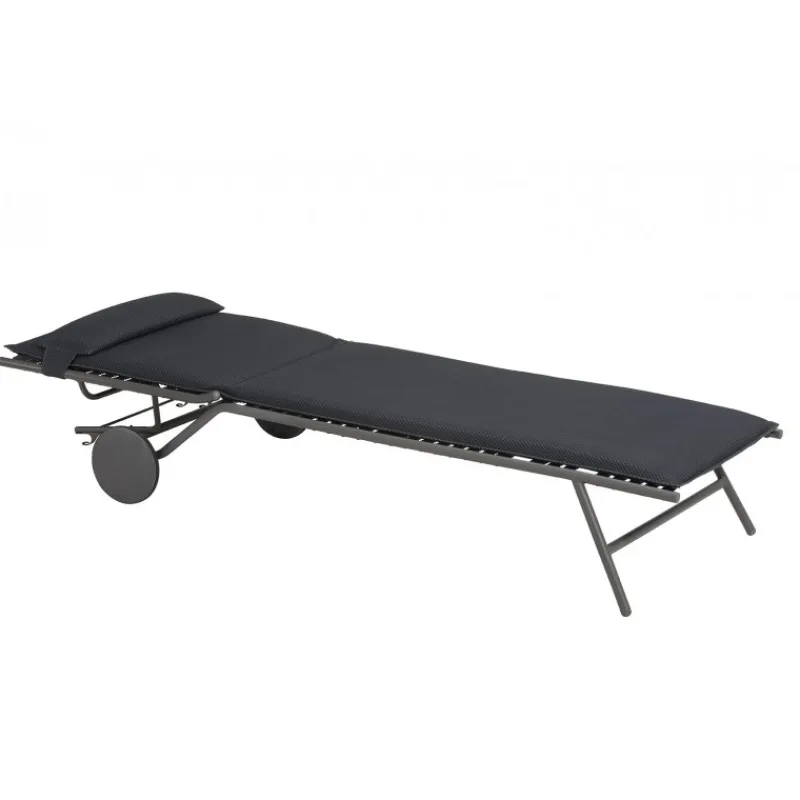 ll lettino prendisoleMiami II unisce design, estetica e tecnicità. Frutto dell’esperienza del marchio per quanto riguarda l’arredamento all’aria aperta, è unico nel suo genere grazie al al dispositivo con sospensione a clip che gli conferisce un comfort unico nel suo genere. Miami II è a suo agio all’esterno, a bordo piscina in particolare, grazie alla tela performante, alla struttura resistente anticorrosione. Facile da spostare grazie alle 2 ruote Se ne apprezza lo stile rifinito e l’eleganza.