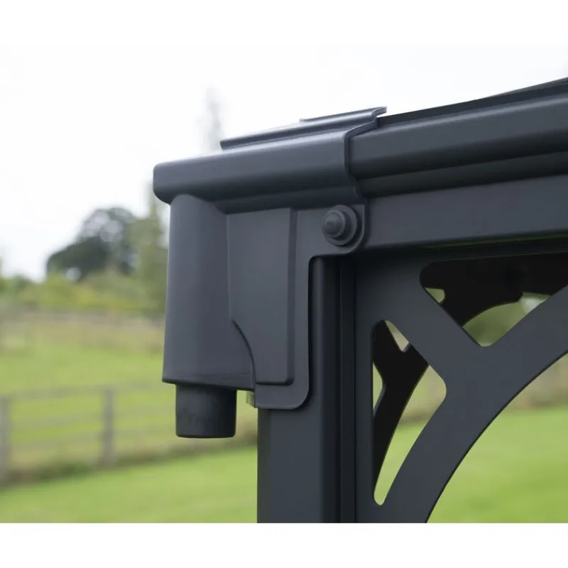 Il gazebo Martinique offre eleganza e funzionalità per il giardino tutto l’anno. Un’aggiunta meravigliosi per eventi in famiglia o rilassarsi durante una giornata di riposo in estate. Include verniciatura a polvere antracite elegante che resiste a corrosione e pannelli in policarbonato doppio da 6 mm di colore bronzo che proteggono da raggi UV dannosi, grandine e neve. La forma rettangolare migliora l’aspetto del giardino, rendendo lo spazio esterno più comodo, perfetto per barbecue o spa all’aperto. Rilassati con stile, riunisciti con la famiglia e organizza cene all’aperto godendo di aria fresca e vista del giardino.