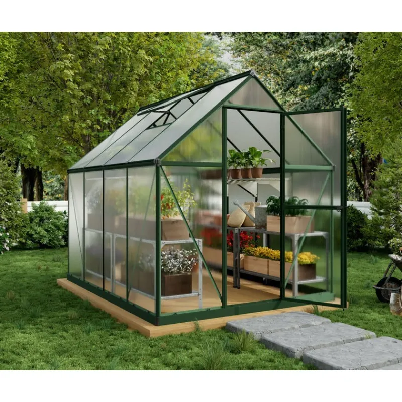 Scopri la Serra da Giardino Canopia Mythos, elegante e pratica, ideale per proteggere le tue piante in ogni stagione. Realizzata con pannelli in policarbonato doppio indistruttibile e struttura in alluminio inossidabile, garantisce stabilità e durata. Dotata di porta bloccabile, ventola sul tetto e base in acciaio galvanizzato. Facile da montare, non necessita di manutenzione. Dimensioni: 247x185x208 cm. Giardinaggio tutto l’anno con Canopia!