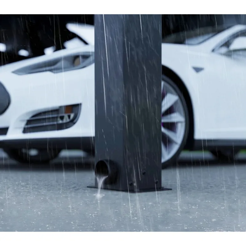 - Gestione della pioggia integrata: le grondaie e gli scarichi integrati deviano l’acqua piovana in modo efficiente, mantenendo la pensilina e l’ambiente circostante all’asciutto..