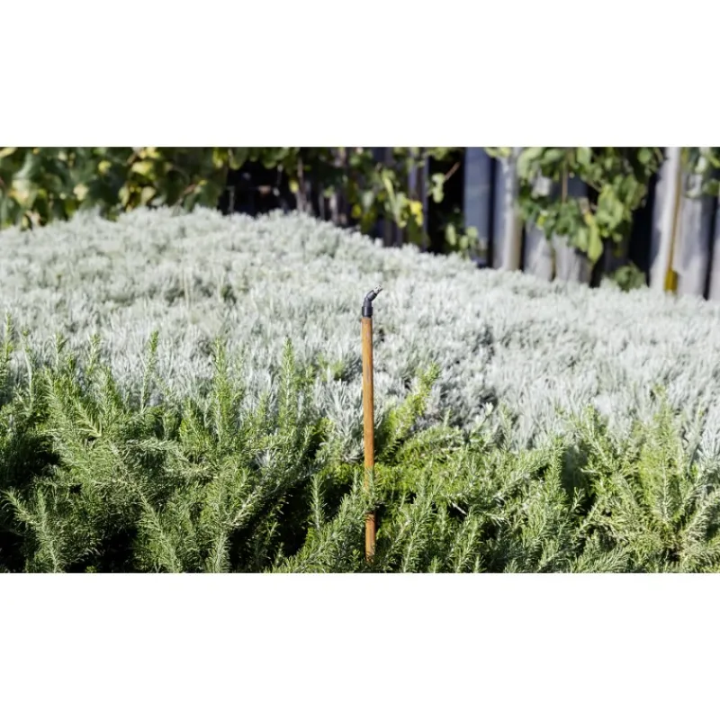 Elegante palo in ferro lungo 100 cm con 1,70 m di tubo da attaccare all‘impianto, connettore in gomma e raccordo a 135° ø 6 mm. Può essere usato per portare in alto la nebulizzazione.