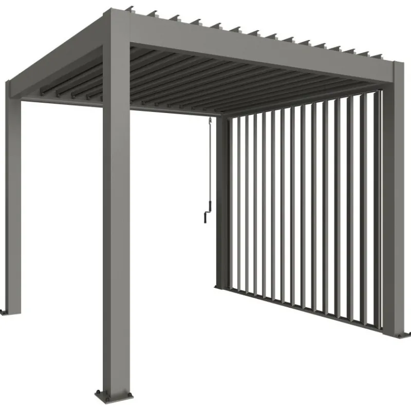 Parete laterale a lamelle per Pergola Biohort per proteggersi dal vento e dalle intemperie. Regolabile manualmente. Non può essere montato sullo stesso lato in cui è presente l´azionamento manuale (manovella).
