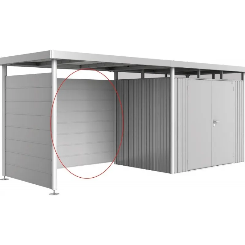 Facoltativamente, si può decidere di aggiungere una parete posteriore e/o una parete laterale alla tettoia laterale della casetta porta attrezzi HighLine (a partire dalla mis. H2). Le pareti sono disponibili negli stessi colori delle casette.