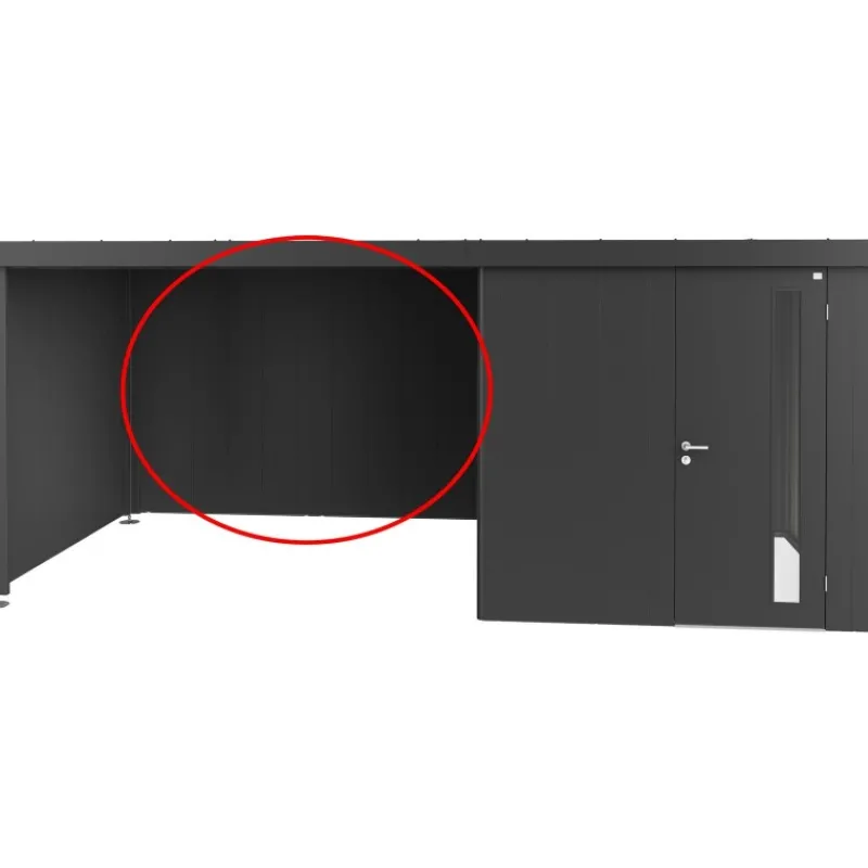 Se lo desideri, puoi installare una parete posteriore sulla tettoia laterale della Casetta NEO. È disponibile nello stesso colore della casetta.