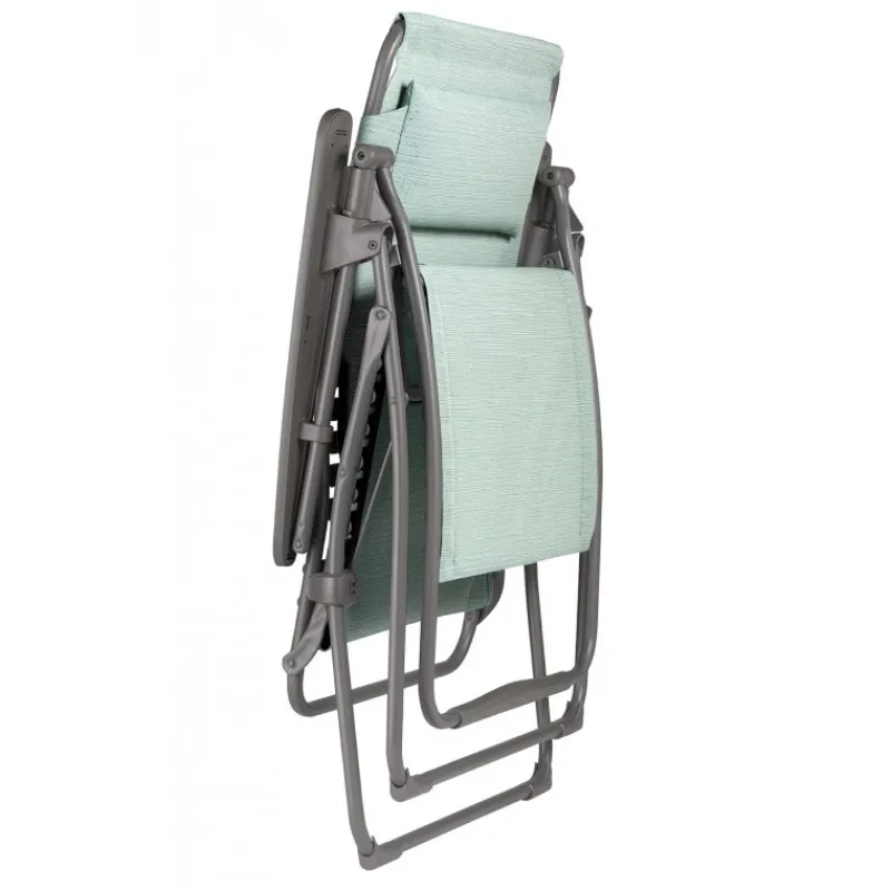 – Sospensioni moderne con clip brevettate Lafuma: clip in elastomero che uniscono la tela al tubo di acciaio per una migliore ergonomia, un comfort piùstabile, un sostegno ottimale per la schiena. Questo sistema consente il montaggio/lo smontaggio semplificati della tela e conferisce al prodotto una maggiore resistenza in qualunque situazione.