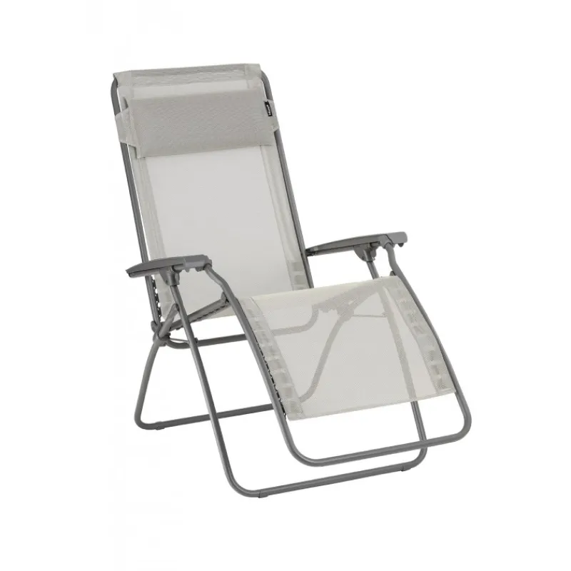 – Sospensioni: i tubi in acciaio e la tela sono collegati mediante clip in elastomero. Questo sistema brevettato Lafuma vi offrirà un comfort piùfermo, un buon sostegno per la schiena, montaggio/smontaggio semplificati della tela e una grande resistenza.