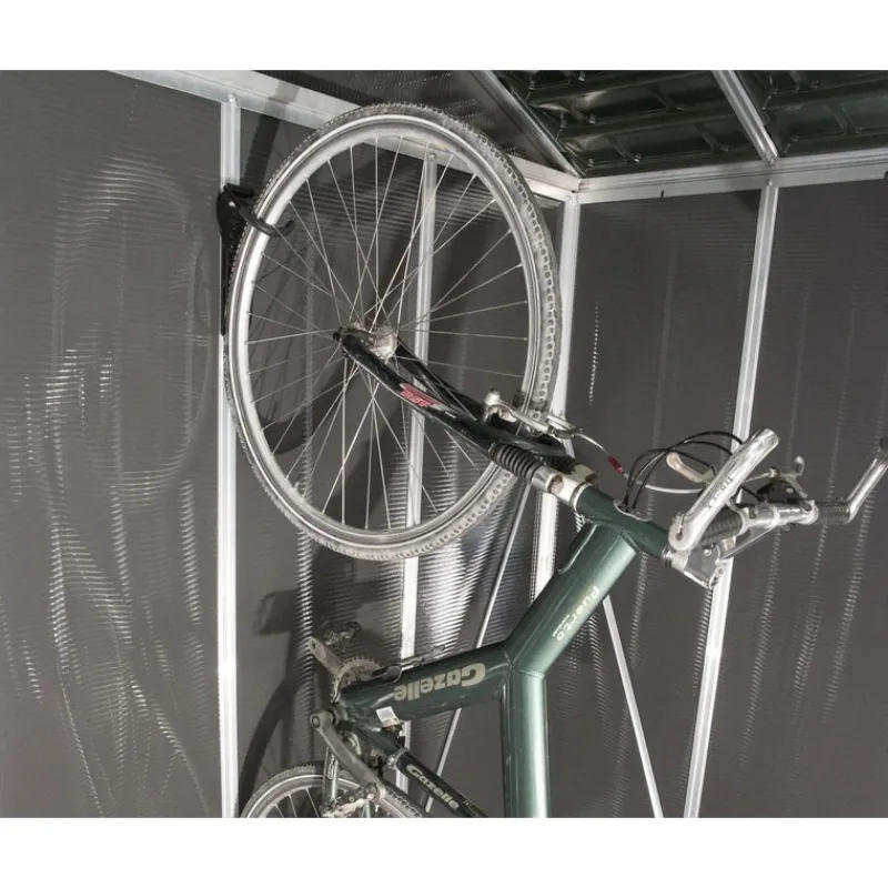 Utilizza il Vertical Bicycle Hanger e tieni la tua bicicletta al sicuro. Facile e veloce da installare, basta appendere la ruota anteriore al gancio rivestito in gomma e appoggiare la ruota posteriore al muro per risparmiare spazio in verticale.