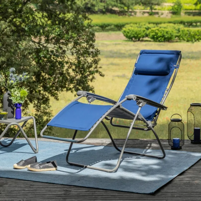 La sdraio-poltrona relax RSX CLIP e la versione imbottita della classica e intramontabile sdraio-poltrona relax con clip, fabbricata con materiali di qualità. Leggera e richiudibile, robusta e pratica, è la compagna dei bei momenti all’esterno o all’interno. Lo schienale ergonomico offre un comfort equilibrato e un buon sostegno della schiena grazie ai fissaggi con clip che arrivano fino all’altezza delle spalle. Poggiatesta ergonomico, regolabile e removibile che vi consentirà di regolarla perfettamente per il massimo comfort. I braccioli ergonomici con effetto ondulato si sposano perfettamente con l’avambraccio grazie all’incavo a livello del gomito e la forma bombata all’altezza del polso.