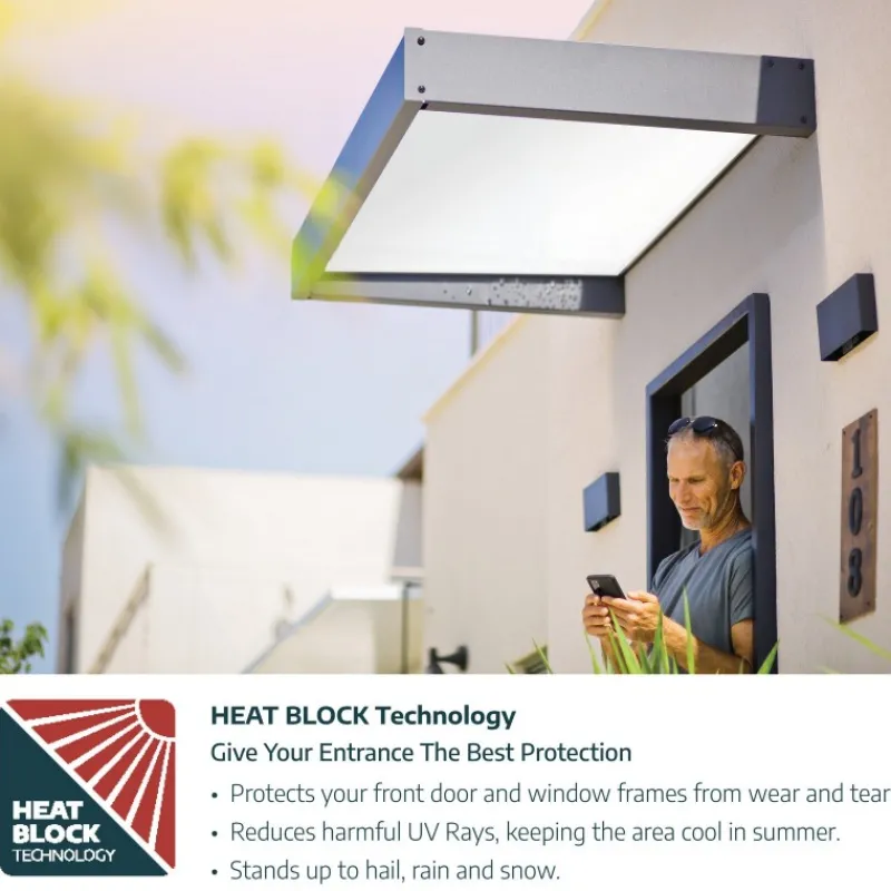- Protegge la porta: Il sistema di vetratura senza viti impedisce la penetrazione di pioggia e rugiada e blocca fino al 100% dei raggi UV dannosi, fino al 100% dei dannosi raggi UV per preservare il vostro ingresso dai danni del sole e dall’usura.
