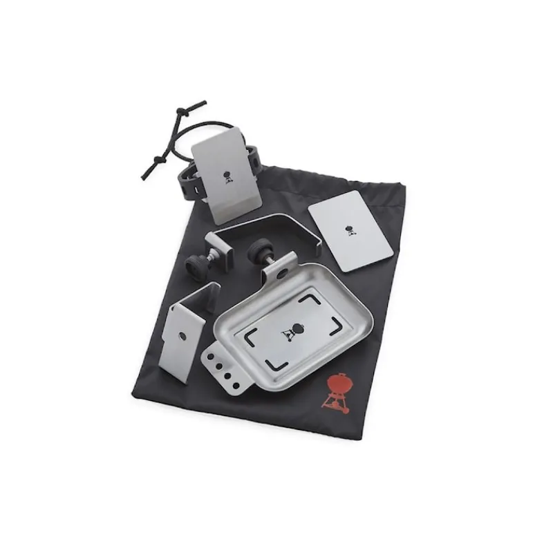 Kit da 6 componenti per posizionare Weber Connect Smart Grilling Hub su diversi modelli di barbecue. Dotato di pratica custodia per lo stoccaggio.