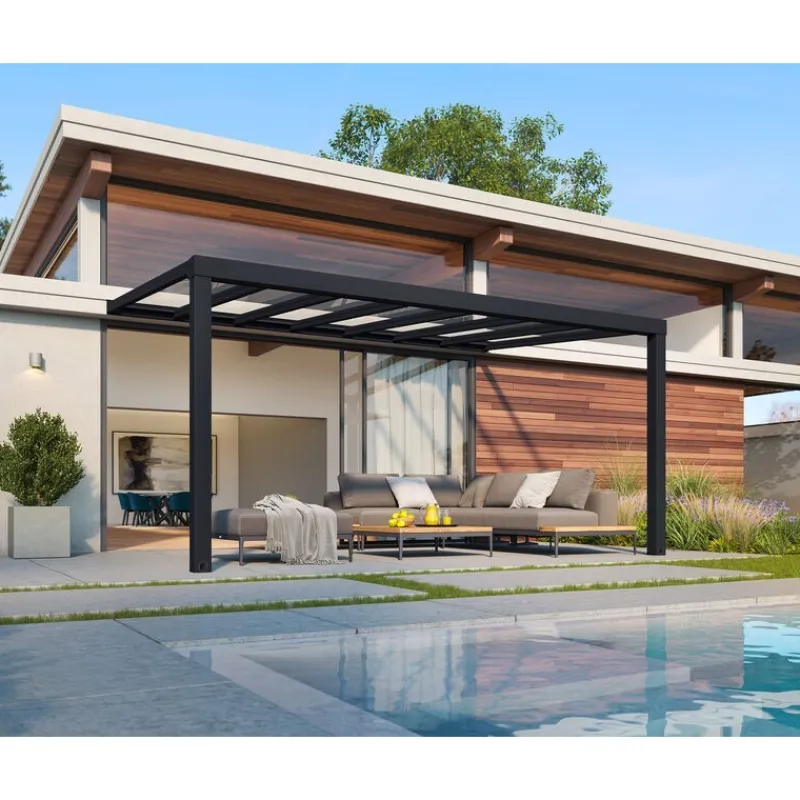 Il copri terrazzo Stockholm è una struttura per esterni robusta e raffinata che permette di stare all’aperto al riparo dalle intemperie in modo elegante.Questa pensilina moderna può essere usata tutto l’anno, consentendo di rilassarsi o godere della vista in giardino.Aggiungi stile a casa o cortile. Usa questa pensilina per terrazzo per cene all’aperto o come posto speciale per organizzare feste ed eventi speciali.Stockholm include istruzioni complete per assemblaggio fai da te. Ideale per rendere casa e giardino più efficiente, offrendo tanto spazio per rilassarsi.