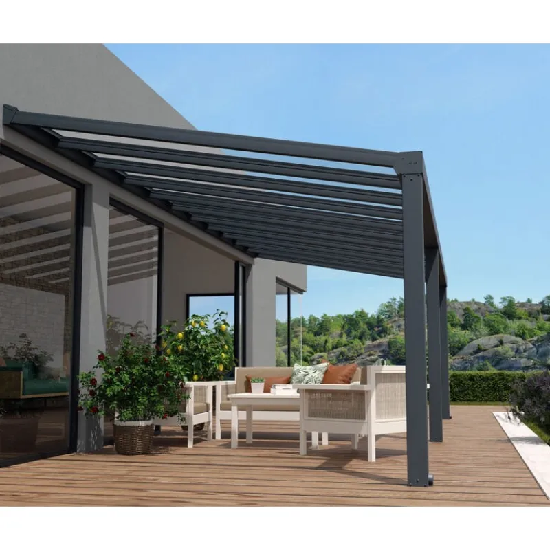 Il copri terrazzo Stockholm è una struttura per esterni robusta e raffinata che permette di stare all’aperto al riparo dalle intemperie in modo elegante.Questa pensilina moderna può essere usata tutto l’anno, consentendo di rilassarsi o godere della vista in giardino.Aggiungi stile a casa o cortile. Usa questa pensilina per terrazzo per cene all’aperto o come posto speciale per organizzare feste ed eventi speciali.Stockholm include istruzioni complete per assemblaggio fai da te. Ideale per rendere casa e giardino più efficiente, offrendo tanto spazio per rilassarsi.