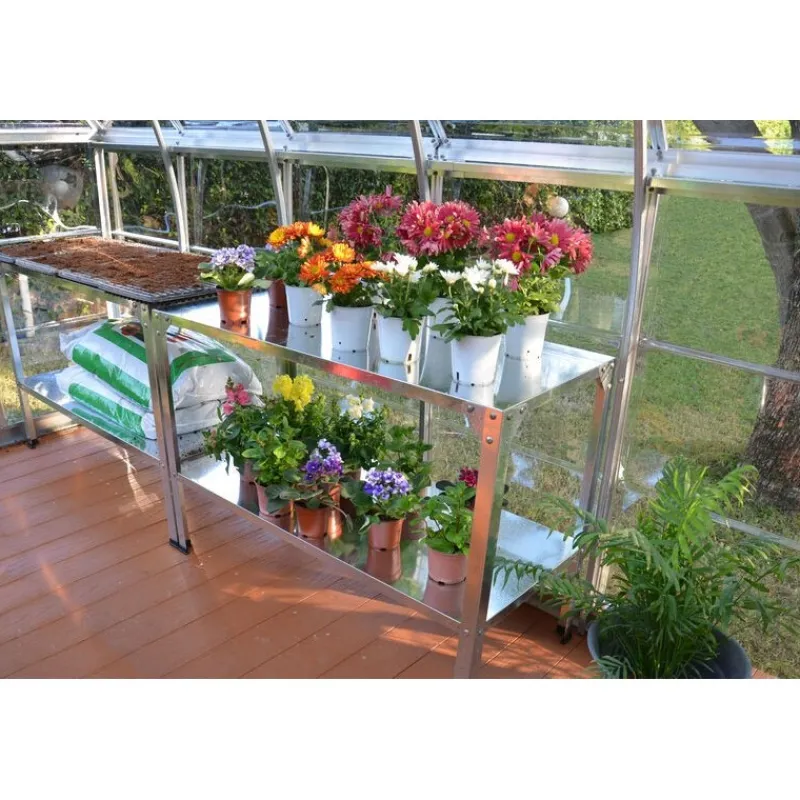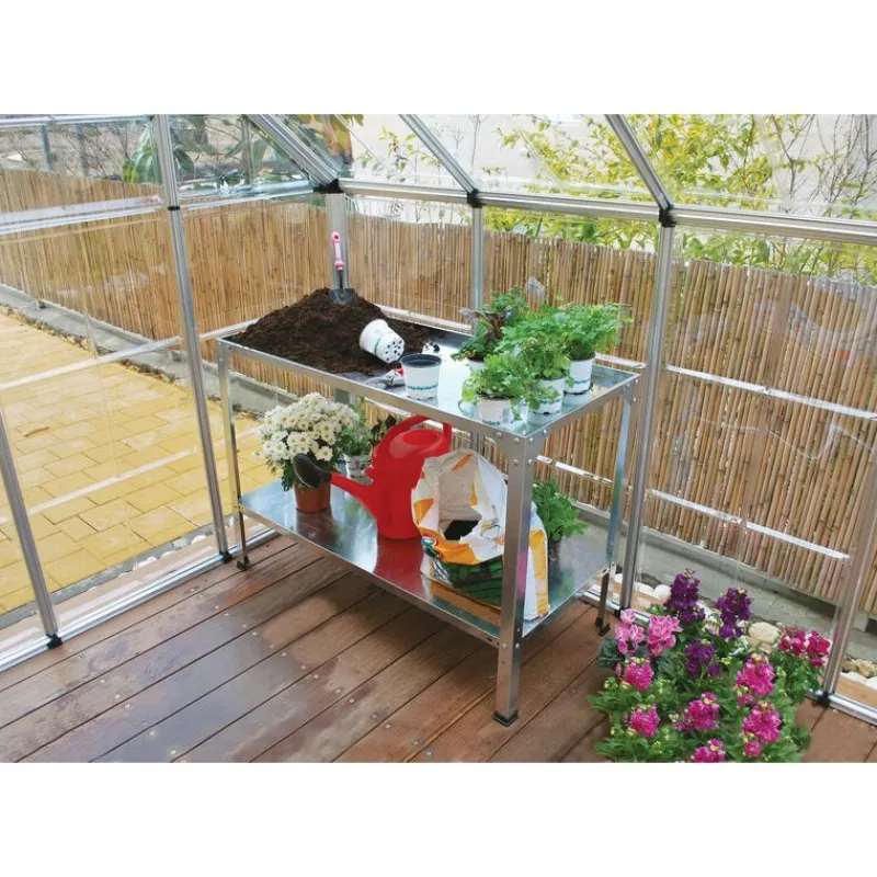 Il tavolo da lavoro in acciaio regolabile a 2 livelli è il ripiano perfetto per tenere lo spazio della serra organizzato. Fornisce un’area per lavorare con vasi con un ampio ripiano inferiore. Posizionabile anche in casetta, garage, giardino ecc. I due ripiani offrono tanto spazio e un’area di lavoro, resistente a carichi pesanti. L’altezza del ripiano inferiore può essere regolata per soddisfare le esigenze di giardinaggio. Non necessita di manutenzione e il ripiano superiore è multiuso: permette di completare operazioni di giardinaggio quotidiane o riporre terriccio quando posizionato al contrario. Questo bancone da lavoro è realizzato in acciaio galvanizzato resistente, portatile e facile da assemblare, spostabile dove necessario.