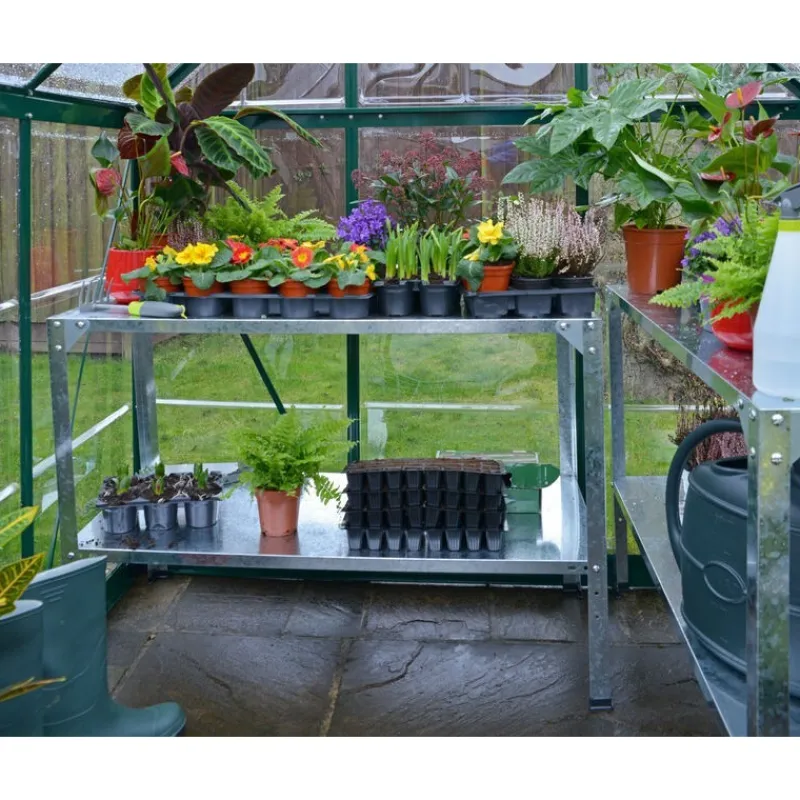 Scopri il Tavolo da Lavoro in Acciaio Canopia: robusto, versatile e resistente. Ideale per organizzare il tuo spazio di lavoro in serra, garage o giardino. Dotato di 2 ripiani regolabili, supporta fino a 75kg ciascuno. Il ripiano superiore è reversibile per riporre terriccio. Realizzato in acciaio galvanizzato, non necessita di manutenzione. Facile da assemblare e spostare. Dimensioni: 51x115x80 cm. Canopia, la qualità che dura nel tempo.
