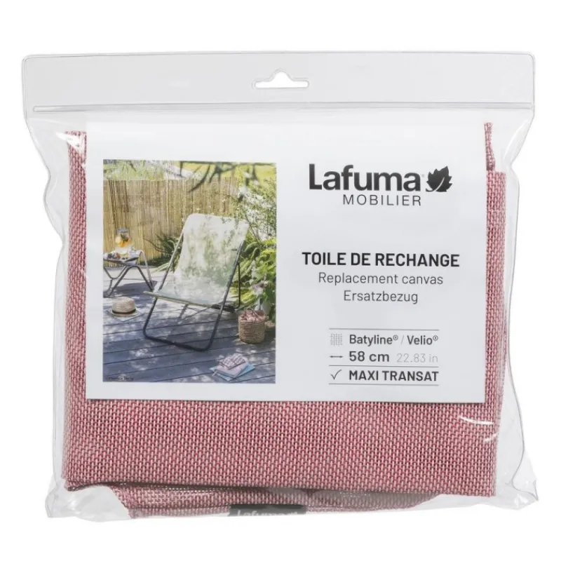La tela di ricambio MAXI TRANSAT (Sedia a sdraio MAXI) in Batyline® ISO è molto facile da montare e vi offrirà un comfort di qualità pari all’originale. Personalizzate la vostra sdraio in base al vostro umore. Tela ideale per l’esterno: resistenza straordinaria ai raggi UV, asciugatura ultra-rapida e facile da pulire con acqua e sapone.