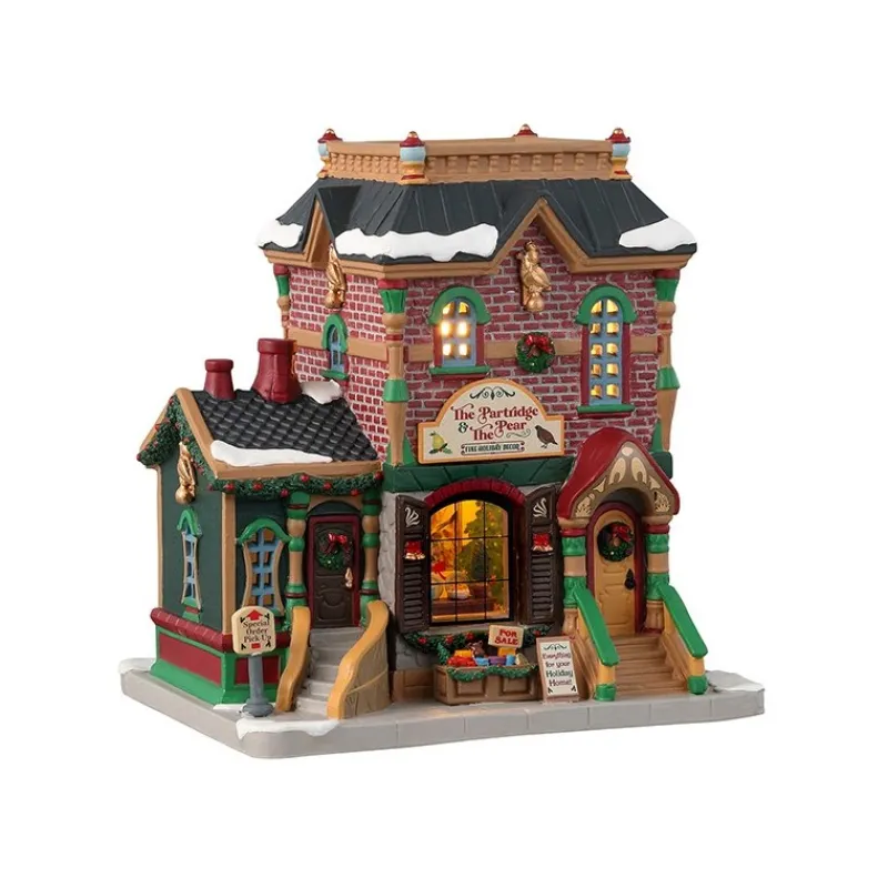 Lemax The Partridge & The Pear Cod. 35072 misura cm 18.2 x 14.4 x 19h ed è composto principalmente in Porcellana.