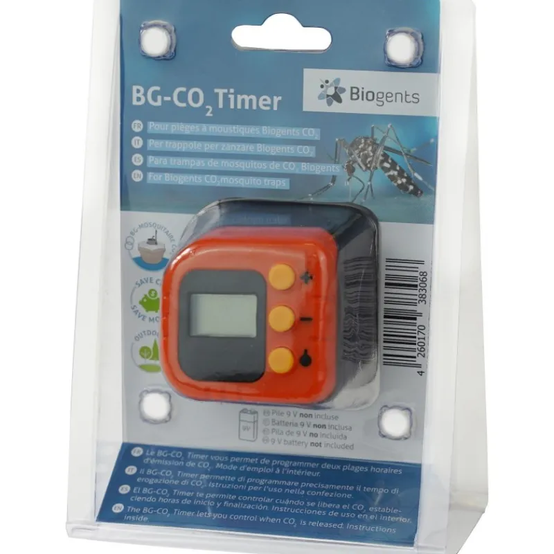 Elimina le zanzare e risparmia utilizzando il timer Biogents BG-CO2 assieme alla trappola Biogents BG-Mosquitaire. Le zanzare sono attive in momenti diversi della giornata e della notte in base alla tipologia. Utilizzando il timer BG-CO2 Timer potrai limitare l’emissione di CO2 ai principali orari di attività delle zanzare nella tua area. In tal modo la bomboletta di CO2 durerà più a lungo e potrai risparmiare.